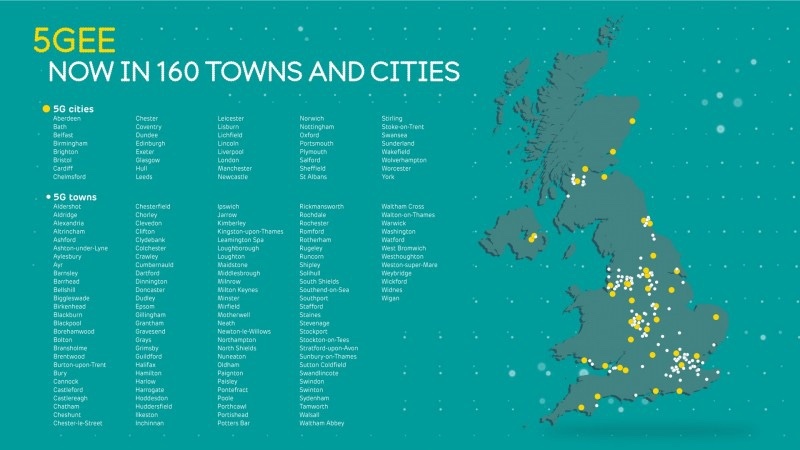 EE has today announced it has switched on 5G in 35 new towns and cities across the UK.