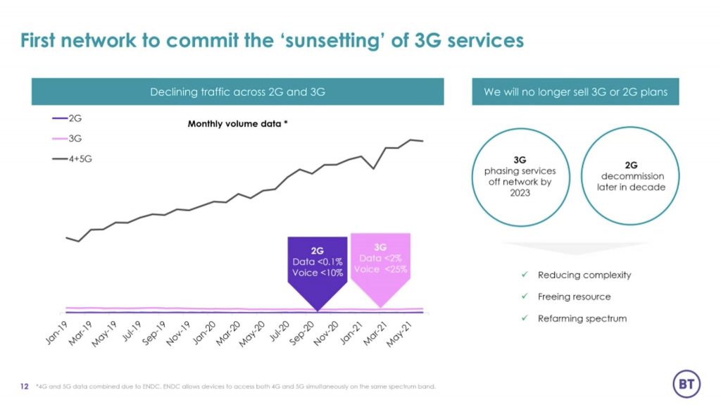 - Legacy 3G services to be retired, with customers across EE, BT Mobile and Plusnet phased off by 2023
