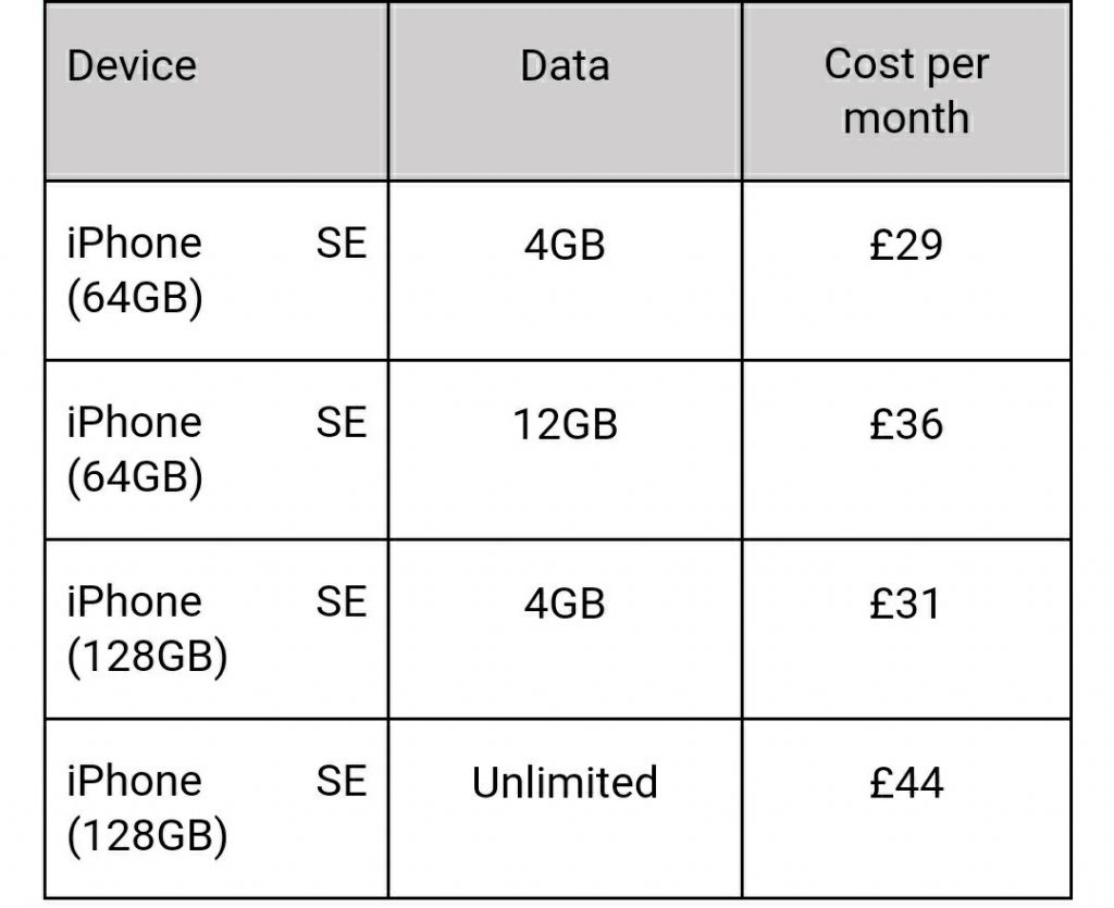 All tariffs are based on a 24 month contract with an upfront cost of £19 and unlimited texts and calls and free Beats X headphones