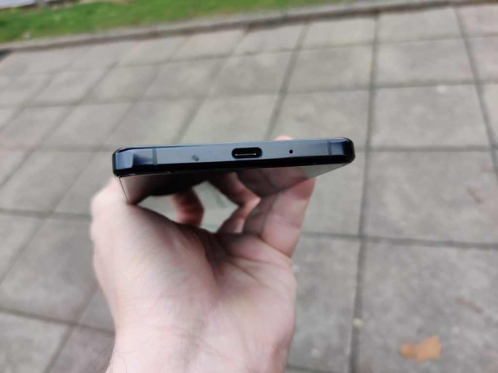 Down at the bottom you have the other microphone used in the dual setup, you also have the USB-C port for data transfer or fast charging at 18w which is decent, but is slower than some of the competition such as Oppo and OnePlus, but thankfully you do also have QI Wireless Charging included too which is a first for a Sony.