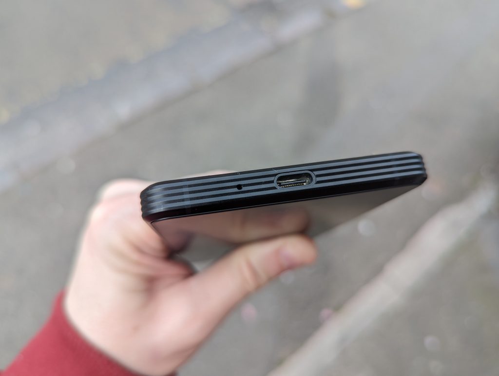 Down at the bottom you’ve got the other microphone used for stereo recording as well as the USB-C charging port which is also used for data transfer.