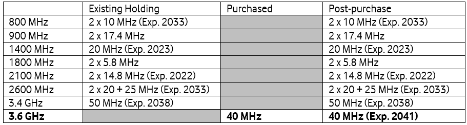 The spectrum acquired has a 20-year licence term through to 2041.