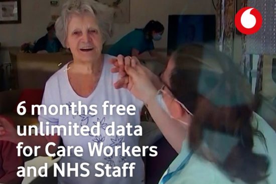 Care workers and NHS staff on Vodafone’s flexible Pay As You Go tariffs buying the minimum of a £10 Big Value Bundle will be upgraded from the usual 3GB of data to free unlimited data, and from 250 minutes to 6,000 minutes.
